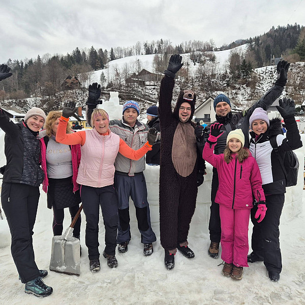 Izpod rok naše, letos sicer nekoliko okrnjene ekipe, ni nastala le snežna skulptura, temveč tudi nova prijateljstva in vezi, ki bodo glas Koroške ponesla širom Slovenije. Ob tem smo se znova spomnili, kako resnična je misel, da »turizem smo ljudje«. Iskrena hvala sodelavcem, ki so zastopali naš glas – nekateri kot graditelji, drugi kot nepogrešljiva moralna podpora. Prijetno in povezovalno vzdušje nas je spodbudilo k razmisleku, da se prihodnje leto še bolje organiziramo in okrepimo ekipo.