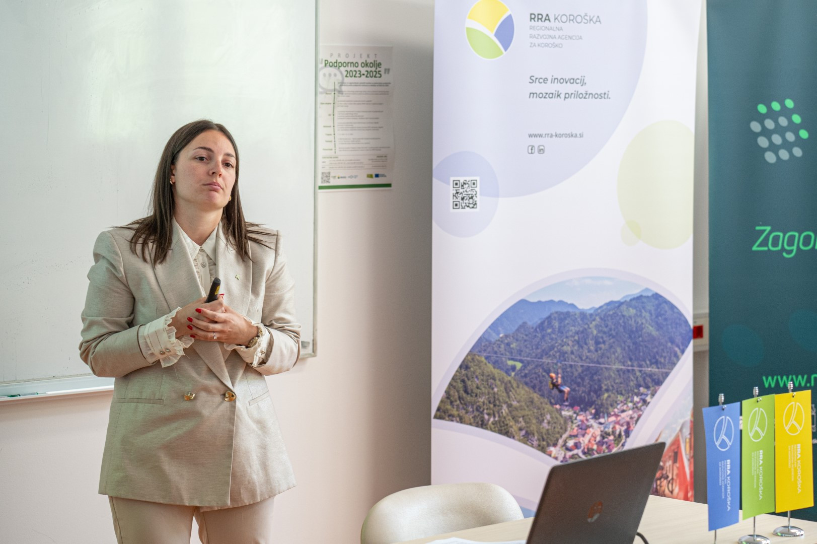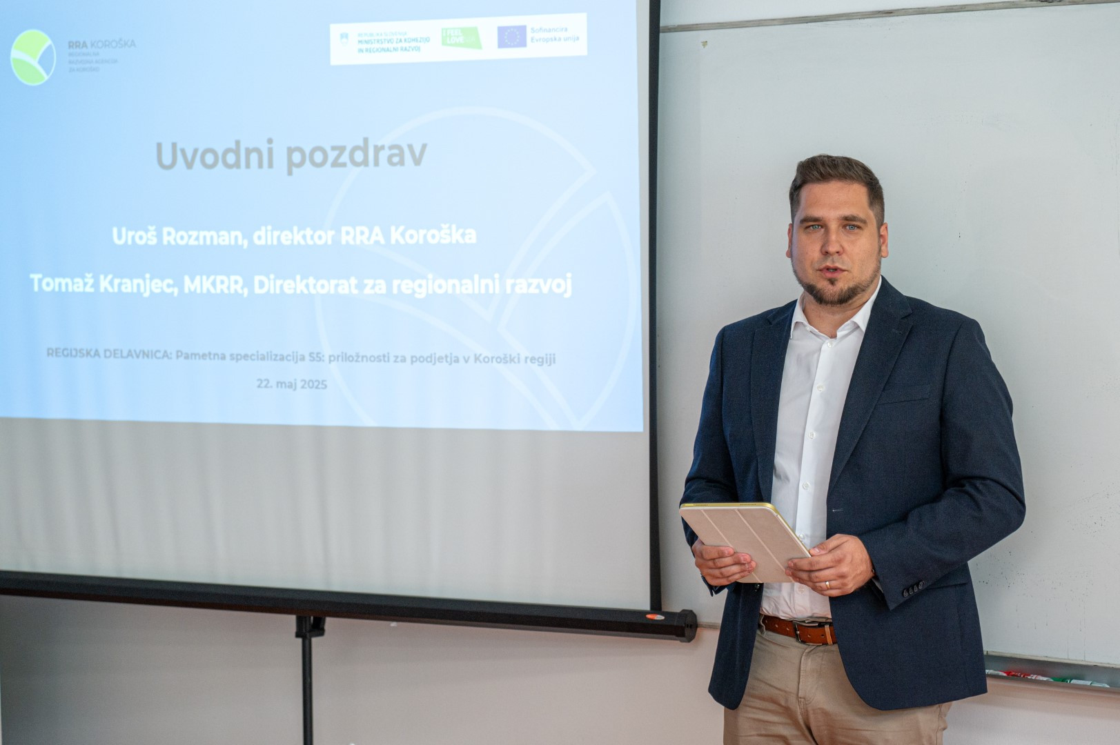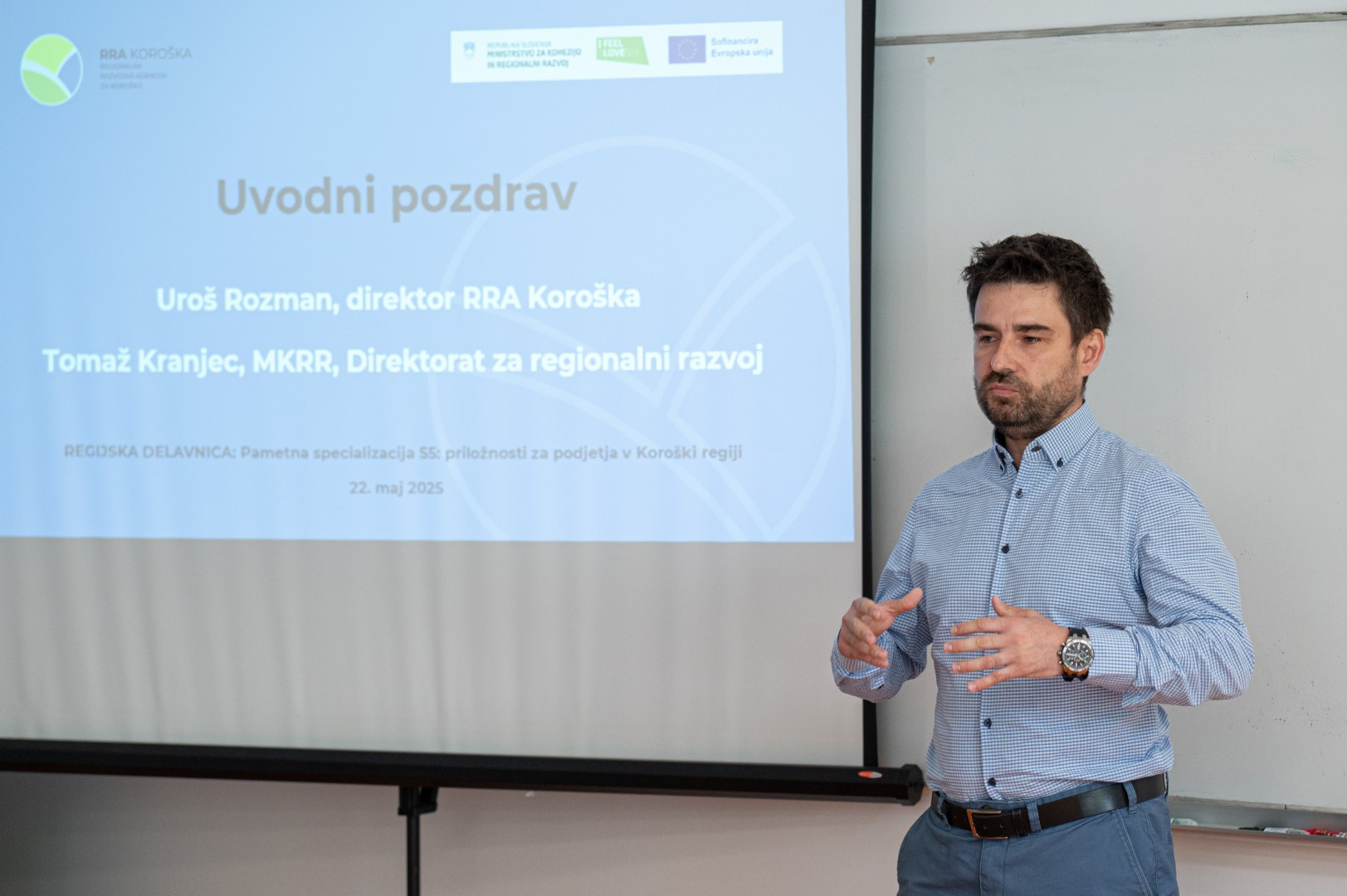 Uvodoma je navzoče nagovoril naš direktor Uroš Rozman, ki je med drugim povedal: »Pametna specializacija S5 je več kot samo politika. Je priložnost, da kot regija in kot podjetja stopimo korak naprej k bolj usmerjenemu, povezovalnemu in trajnostnemu razvoju. To je orodje, s katerim lahko preoblikujemo naše gospodarske prednosti v konkretne razvojne priložnosti. Na RRA Koroška aktivno delujemo kot povezovalni člen med podjetji, raziskovalnimi in izobraževalnimi ustanovami ter državnimi institucijami. Naša vizija ni le razvoj regije, ampak njen prehod v višjo razvojno kakovost – temelječo na znanju, inovacijah in trajnostnih pristopih.«