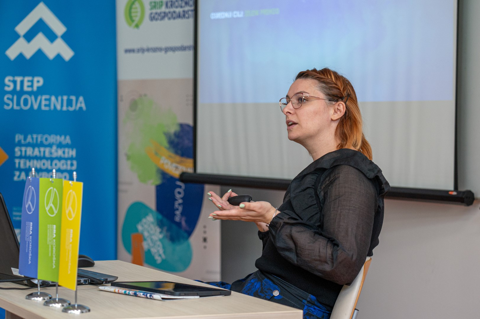 S platformo STEP nas je seznanil mag. Božidar Pučnik iz Slovenskega podjetniškega sklada. Katja Pokeržnik, direktorica Koroške gospodarske zbornice pa je prisotnim predstavila Slovenski center za krožno gospodarstvo. Dogodek smo sklenili s tremi predstavitvami dobrih praks v okviru uspešnih podjetij v naši regiji.