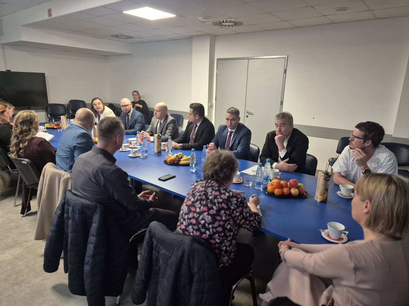 V nadaljevanju dneva smo se v prostorih Splošne bolnišnice Slovenj Gradec udeležili delovnega sestanka s predstavniki zdravstvenih ustanov ter državnima sekretarjema Jasno Humar in Denisom Kordežem, ki je bil namenjen razpravi o zdravstvenih regijah.