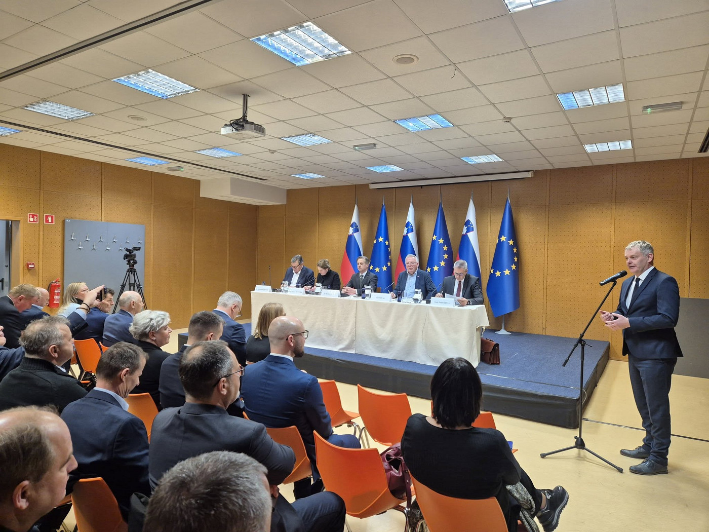 Delovni obisk smo sklenili z razpravo s predsednikom Vlade RS, dr. Robertom Golobom, ministri, gospodarstveniki in župani, ki je potekala v MKC Slovenj Gradec.