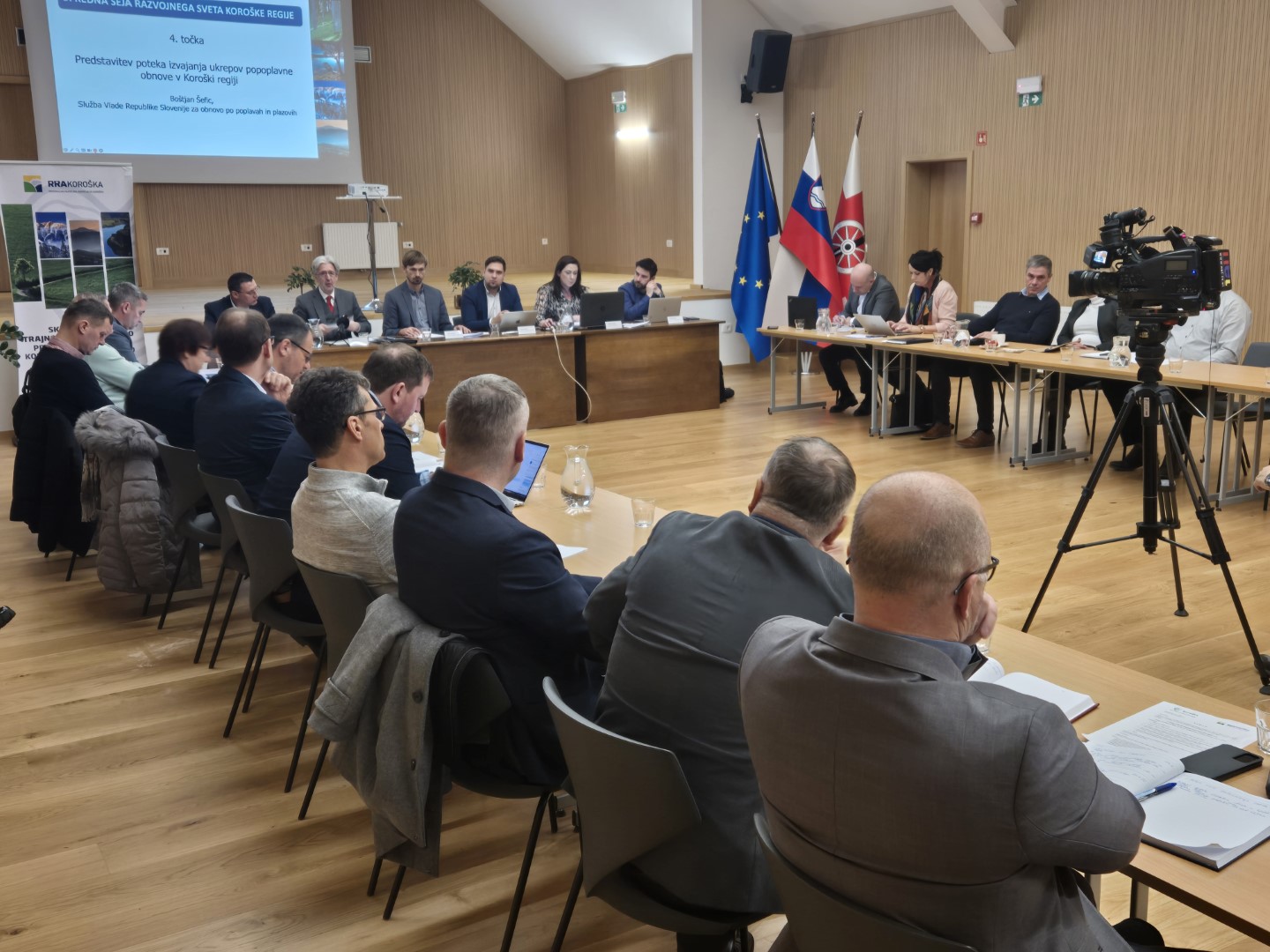 Na Občini Muta je danes, v petek, 24. januarja 2025, potekal Razvojni svet Koroške regije, kateremu predseduje županja Občine Muta Angelica Mrak. RRA Koroška je na seji predstavila izhodišča za pripravo Regionalnega prostorskega plana za Koroško razvojno regijo. Hkrati smo bili priča predstavitvi poteka izvajanja ukrepov po poplavne obnove v Koroški regiji s strani poročevalca Boštjana Šefica iz Službe Vlade RS za obnovo po poplavah in plazovih. Informacijo o poteku priprave programja o 99. členu Zakona o obnovi, razvoju in zagotavljanju finančnih sredstev pa je podal Srečko Đurov iz Ministrstva za kohezijo in regionalni razvoj.