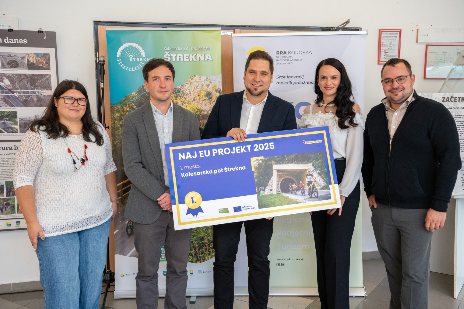 Danes, 17. oktobra 2025, smo v Mislinji tudi uradno in ponosno prevzeli plaketo za naziv NAJ EU PROJEKT 2025, ki je pripadel kolesarski poti Štrekna.