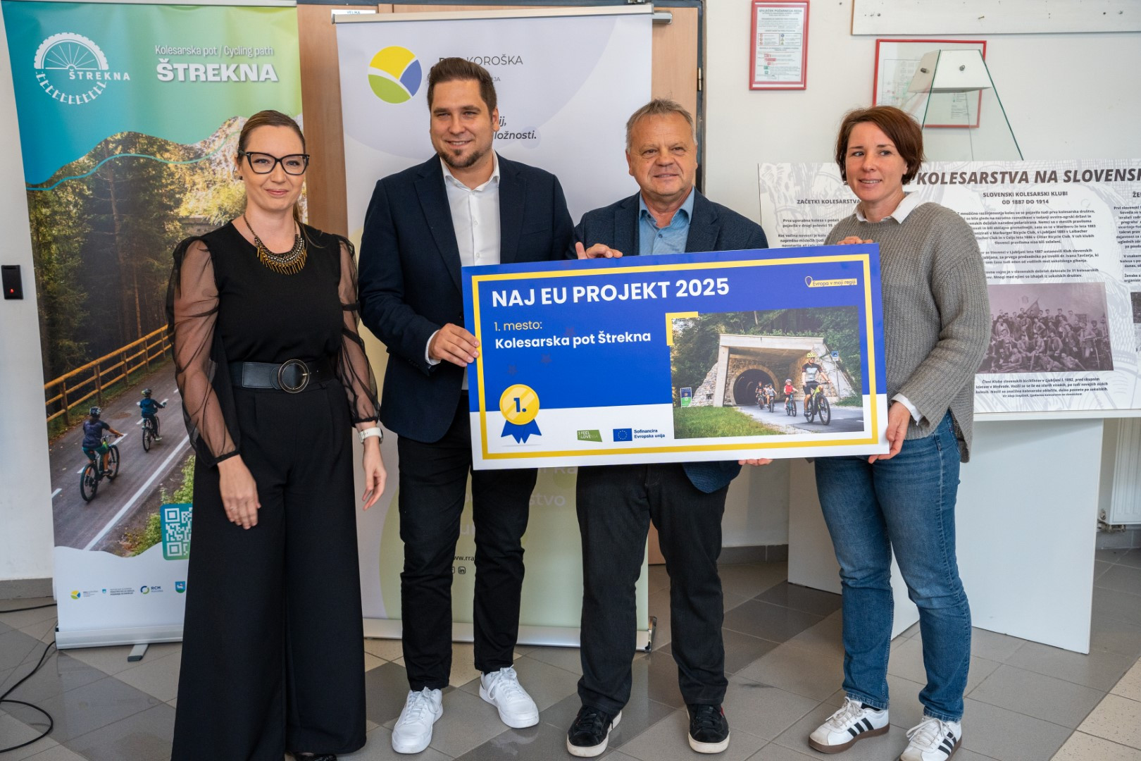 Uradna podelitev plakete za naziv NAJ EU PROJEKT 2025, ki ga je prejela kolesarska pot Štrekna