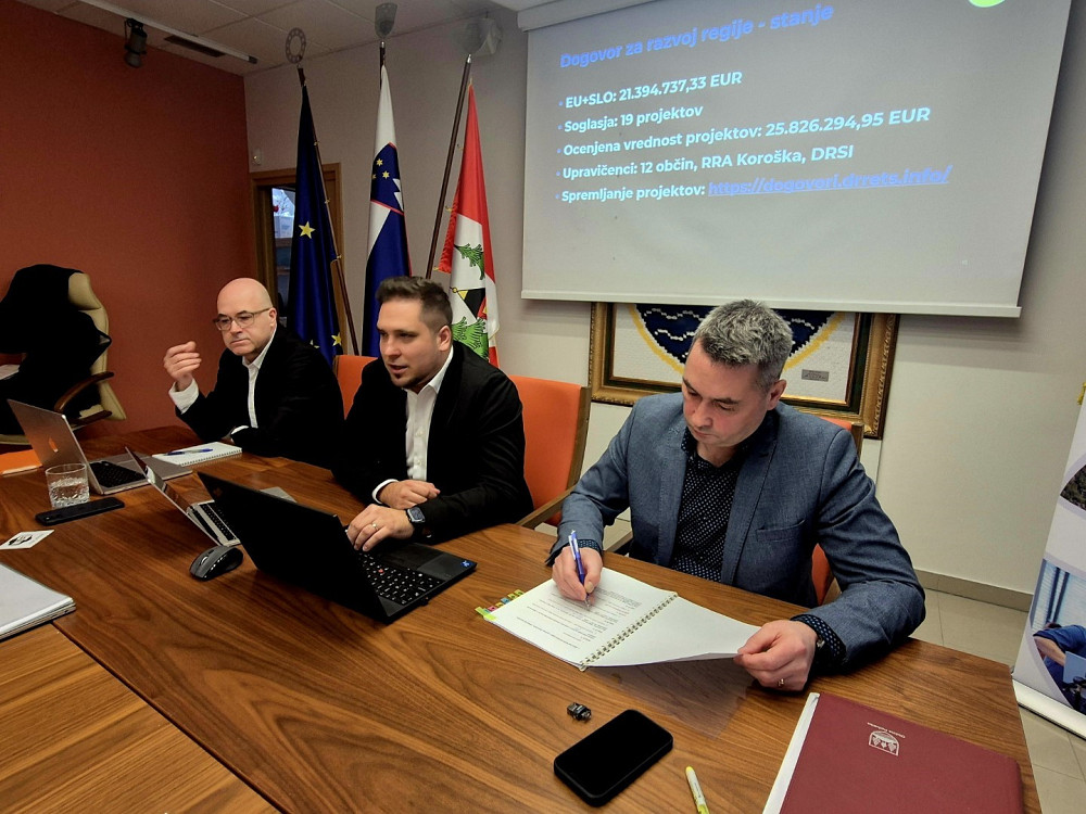 Sledil je pregled stanja projektov v okviru Dogovora za razvoj regije. Direktor RRA Koroška Uroš Rozman je pojasnil, da ima regija v okviru Dogovora za razvoj regij identificiranih 19 projektov v skupni vrednosti nekaj več kot 25 milijonov evrov. Od tega je eden že v izvajanju, eden je prejel odločitev o podpori in čaka na podpis pogodbe. Sedem projektov je trenutno v obravnavi na ministrstvih, kjer se še čaka na odziv, deset projektov pa občine še pripravljajo in jih bodo v kratkem posredovale resornemu ministrstvu.